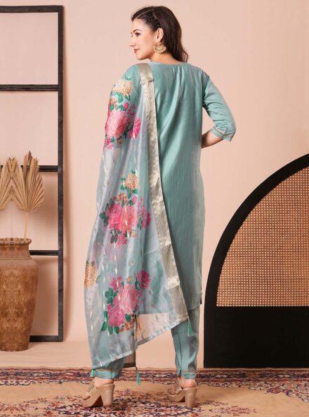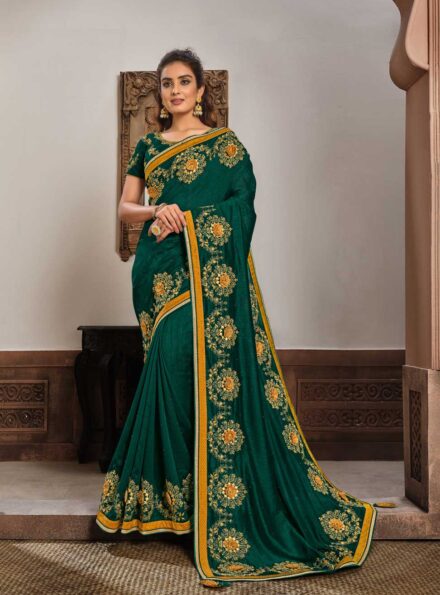 Sea Blue Color Tissue Fabric Saree With Zari Embroidery, Stone Work