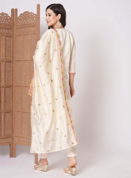 Nude Pink Color Silk Georgette Saree With Digital Print, Zari and Resham Embroidery Work
