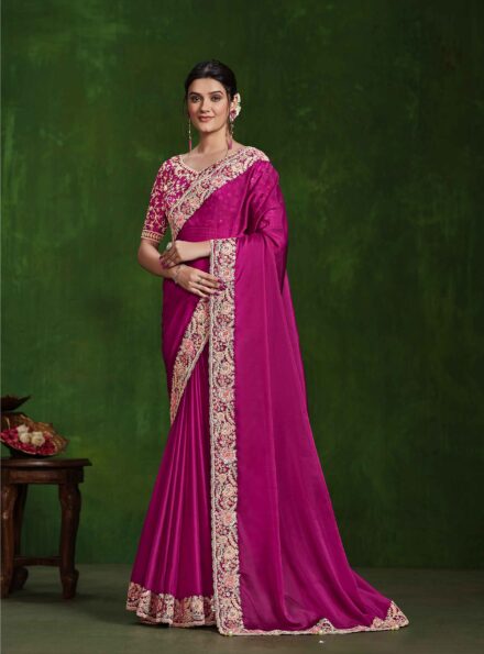 Pink Two Tone Satin Silk Sequins work Saree with Unstitched Blouse