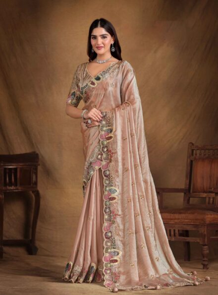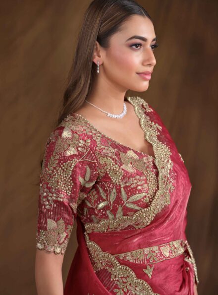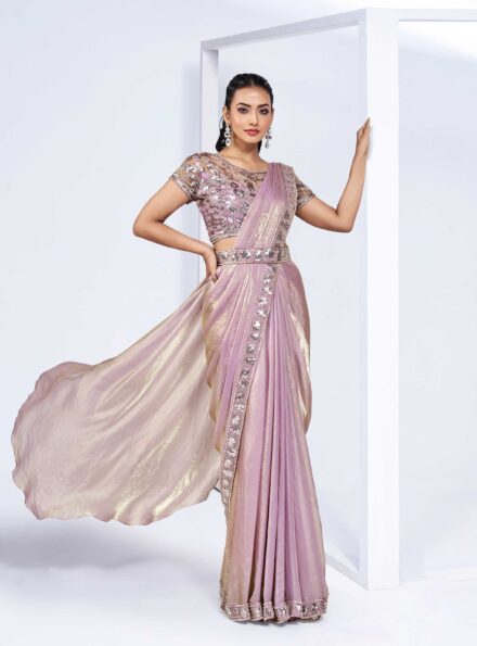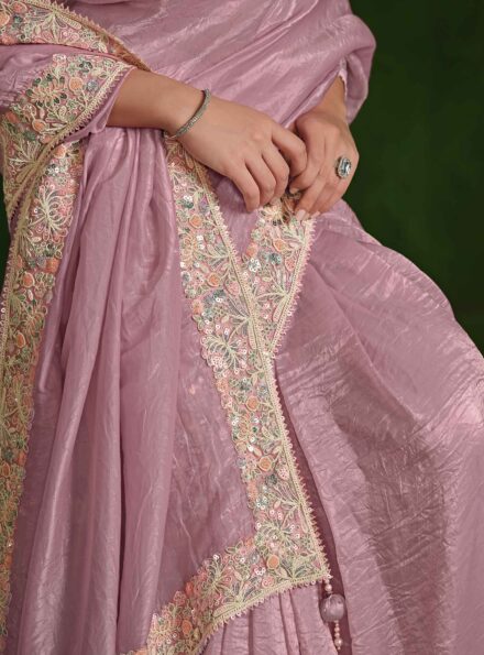 Dusty Pink Crush Paper Silk Dual Sequence with Handwork Saree with Stitched Blouse