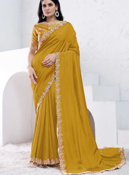 Mustard Pure Crepe Silk Moti with hand work Saree with Unstitched Blouse