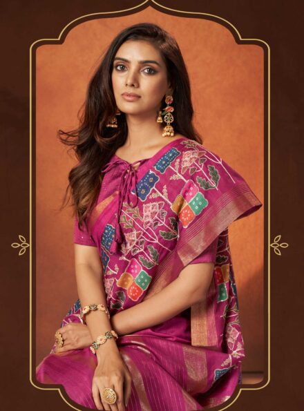 Hand work lace Party Wear Saree Tusser Satin Silk